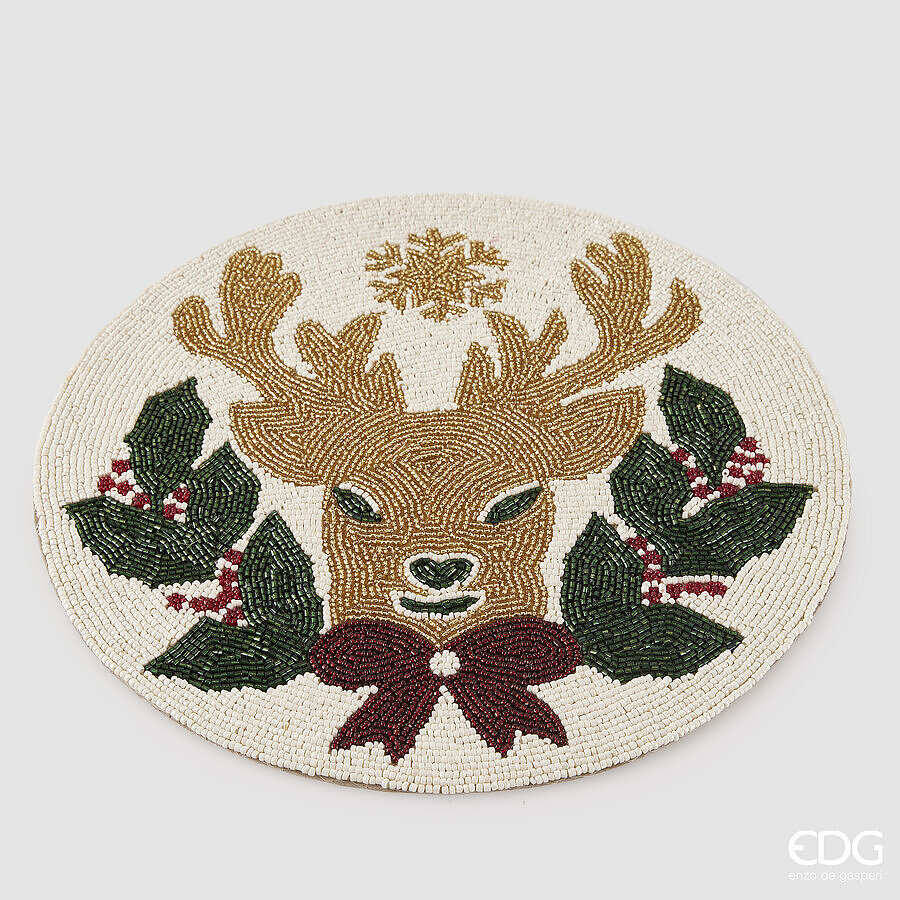EDG Enzo De Gasperi Sottopiatto Renna con Perline Rotondo Natale D 36 Cm Multicolor