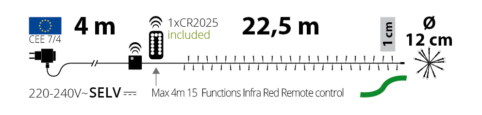 Lotti Catena Natale Festone Cluster D 12 Cm 2200 Led Bianco 22,5 Mt + 4 Mt