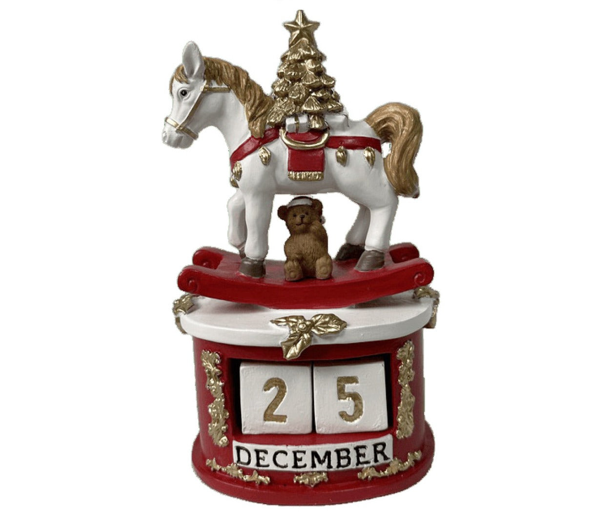 Preziosa Home Cavallo Natale Decorativo con Calendario Poliresina 12 x 9 x 20 Cm Scatola