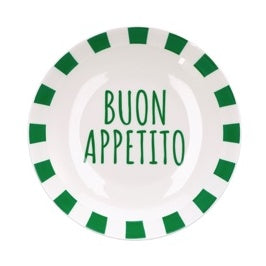 Il piatto fondo Sunny Regalo Italiano in porcellana New Bone China è perfetto per portare in tavola colore, allegria e originalità. Decorato con scritte decorative e bordi a contrasto, dona carattere alla mise en place, ideale per pranzi informali, brunch e momenti conviviali.
