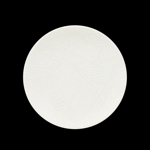 Realizzato in porcellana bianca di alta qualità, presenta un delicato rilievo tono su tono con motivo di foglie, perfetto per una mise en place elegante e moderna 🍽️
