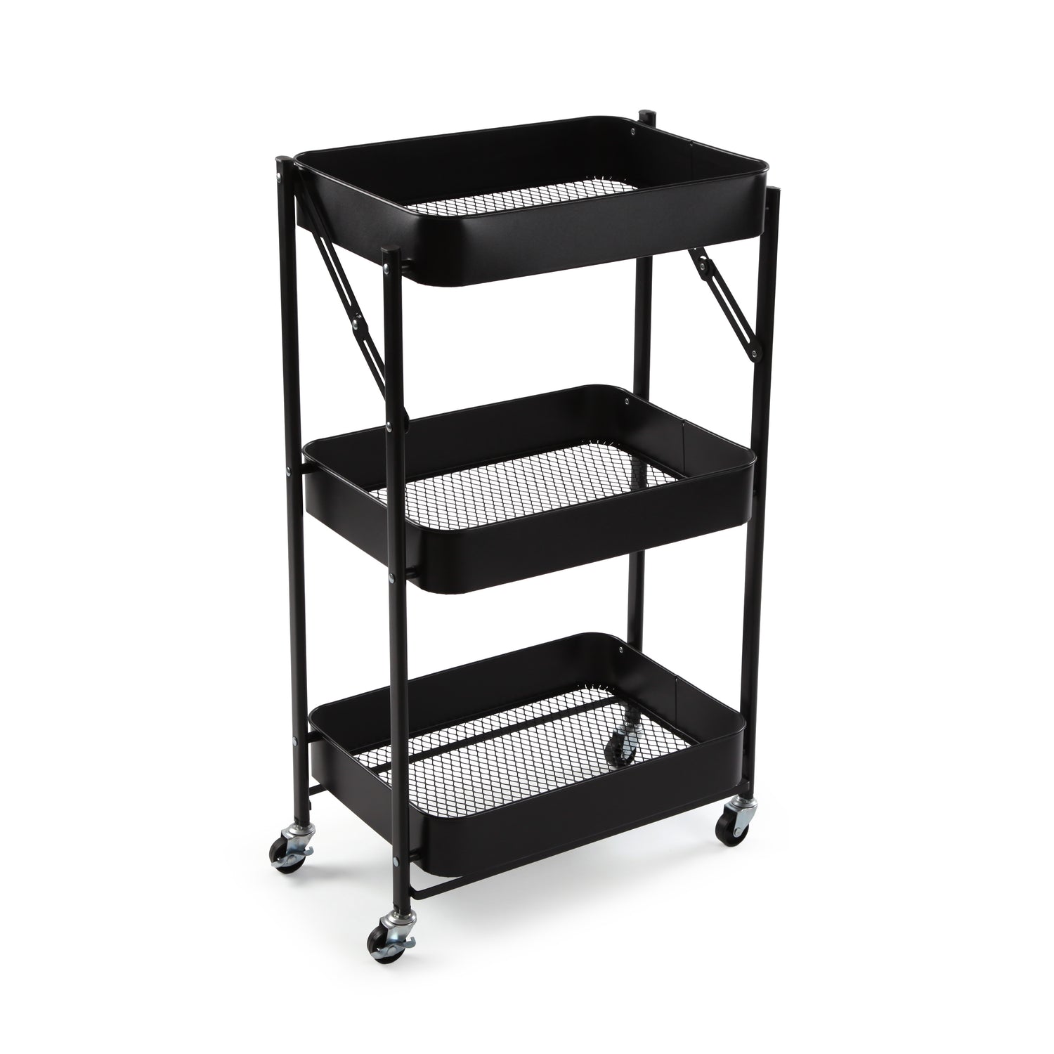 🏠 Carrello Pieghevole in Metallo Nero – 3 Ripiani | Versa ✨🖤